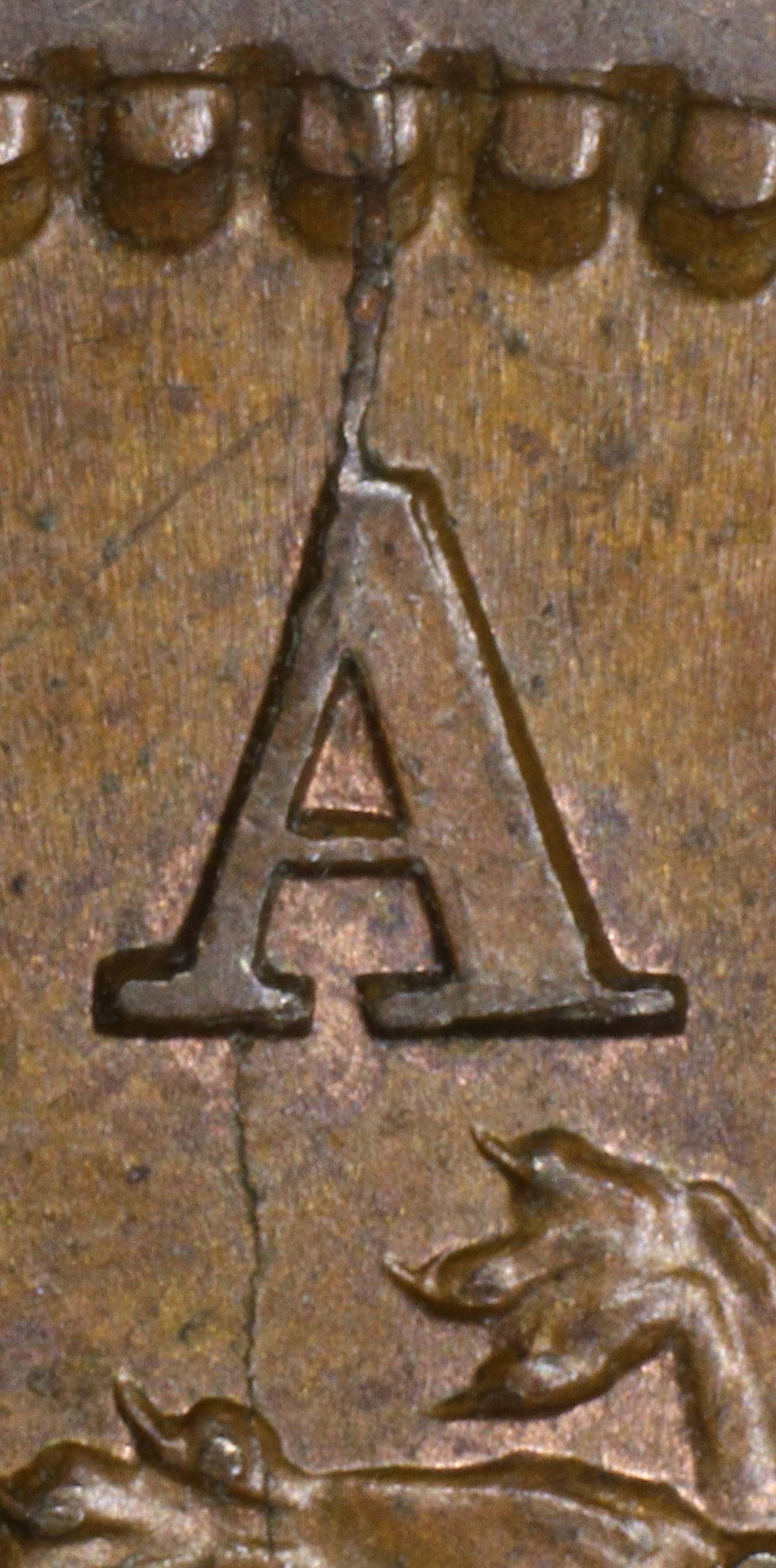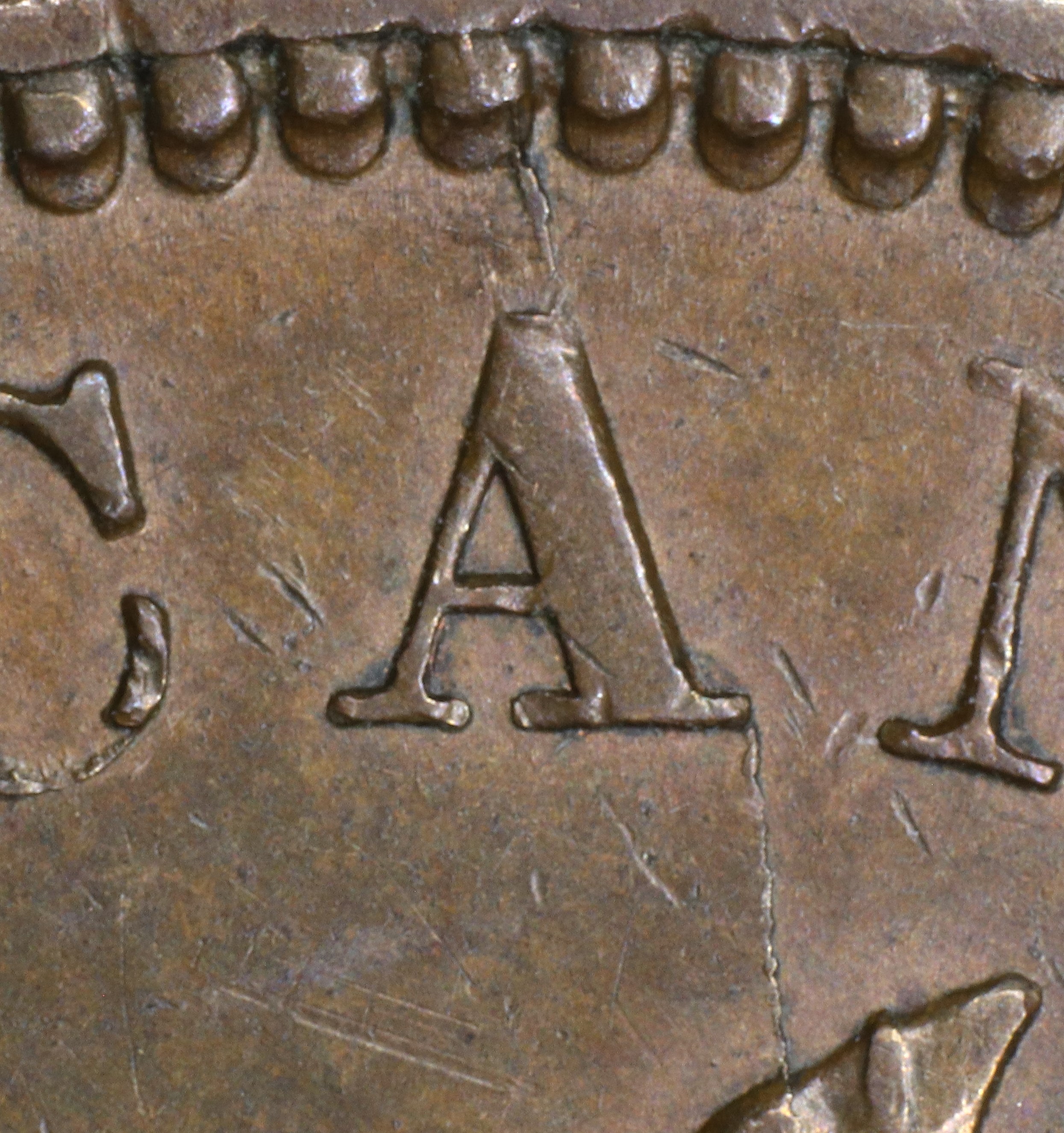 Compare the die crack detail in the CANADA area of your coin with the photos below. Remember that cracks can enlarge with die usage, so carefully compare the shape and location of the crack relative to the rim denticles and where it strikes the letter. If you find a match, click on the catalog number link above the photo to go to the home page for that catalog number. There you can check for other markers to confirm your tentative identification.