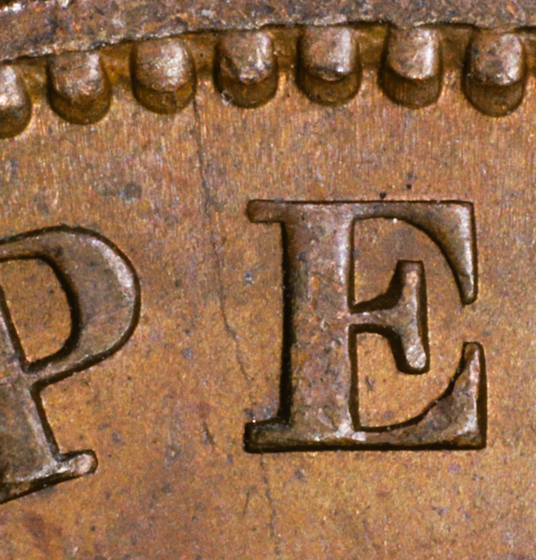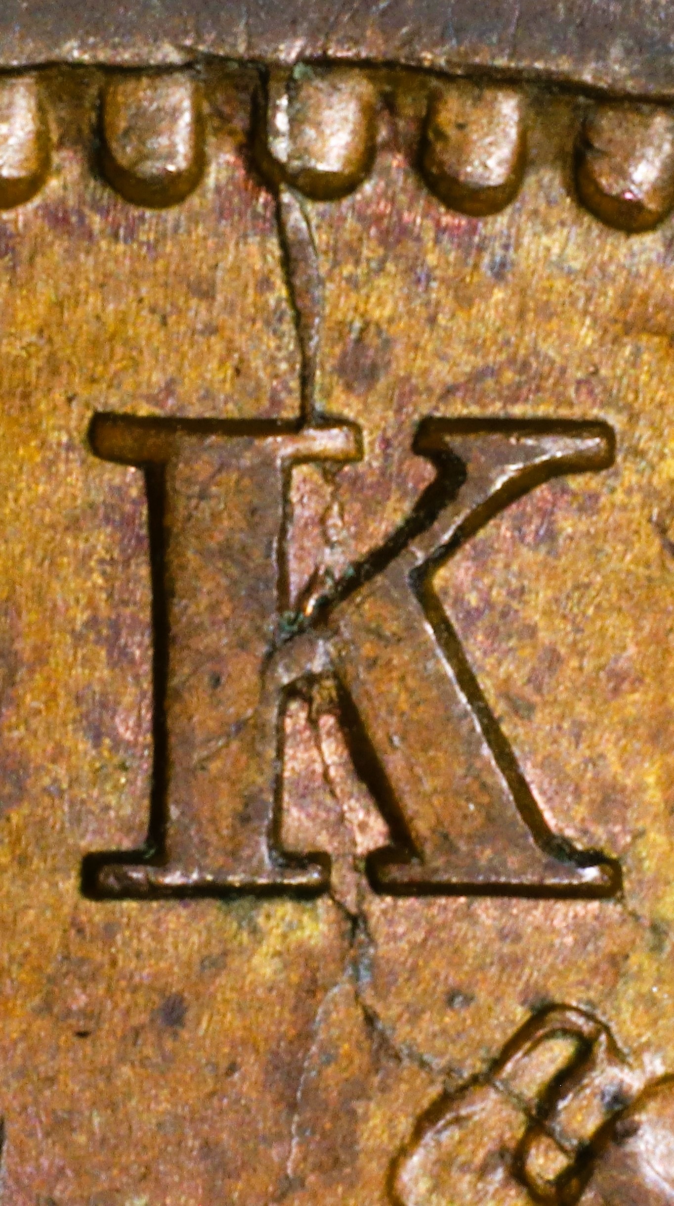 Letter color code: Black = normal, Green = broken & unrepaired, Brown = broken with noteworthy repunching