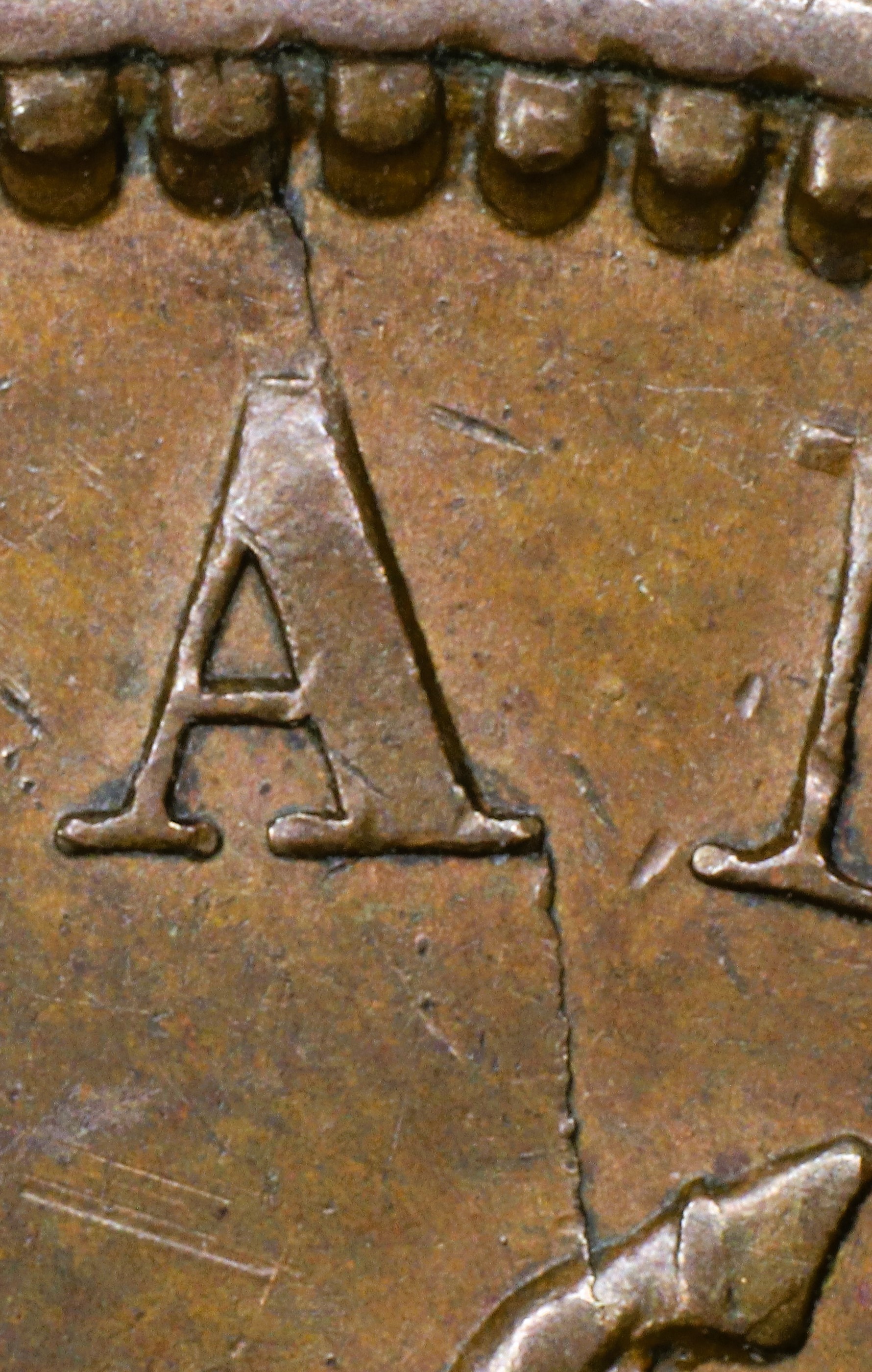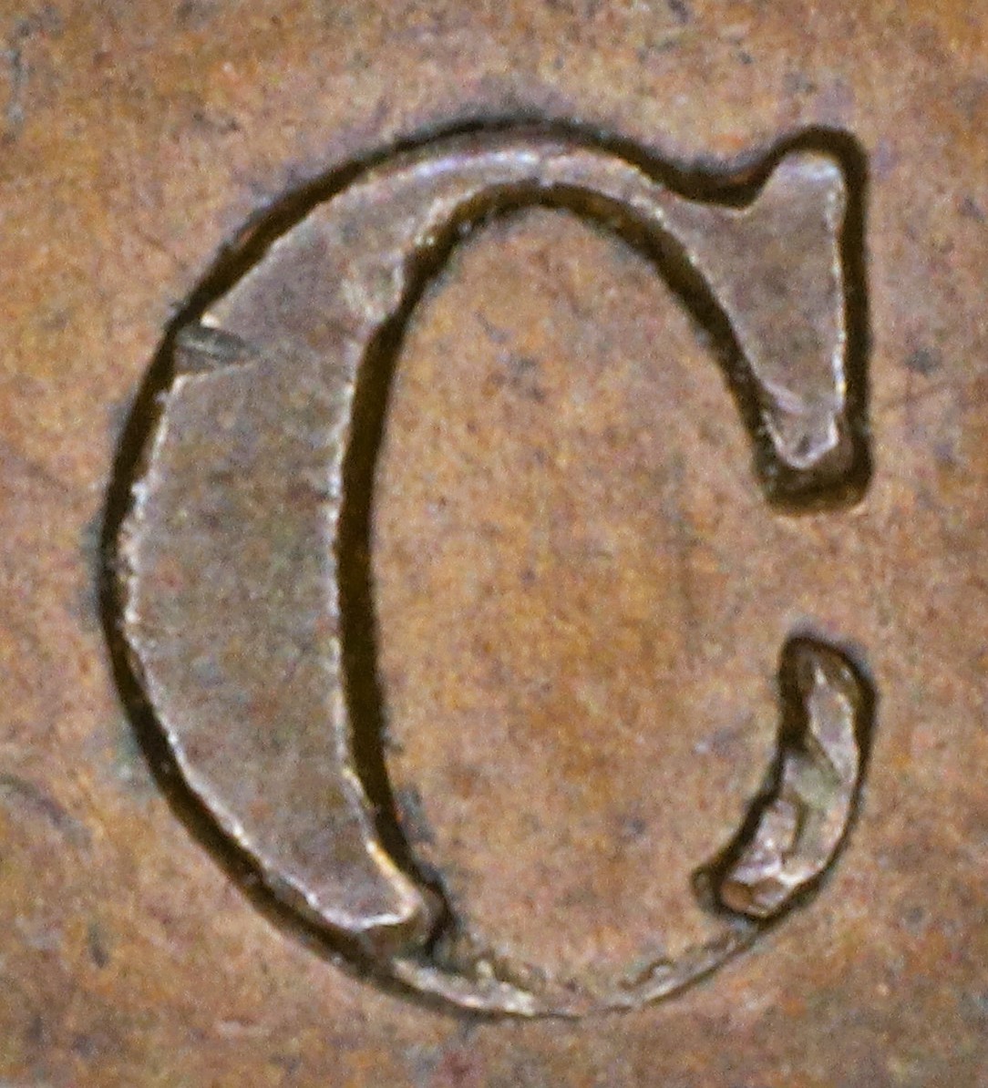 Letter color code: Black = normal, Green = broken & unrepaired, Brown = broken with noteworthy repunching