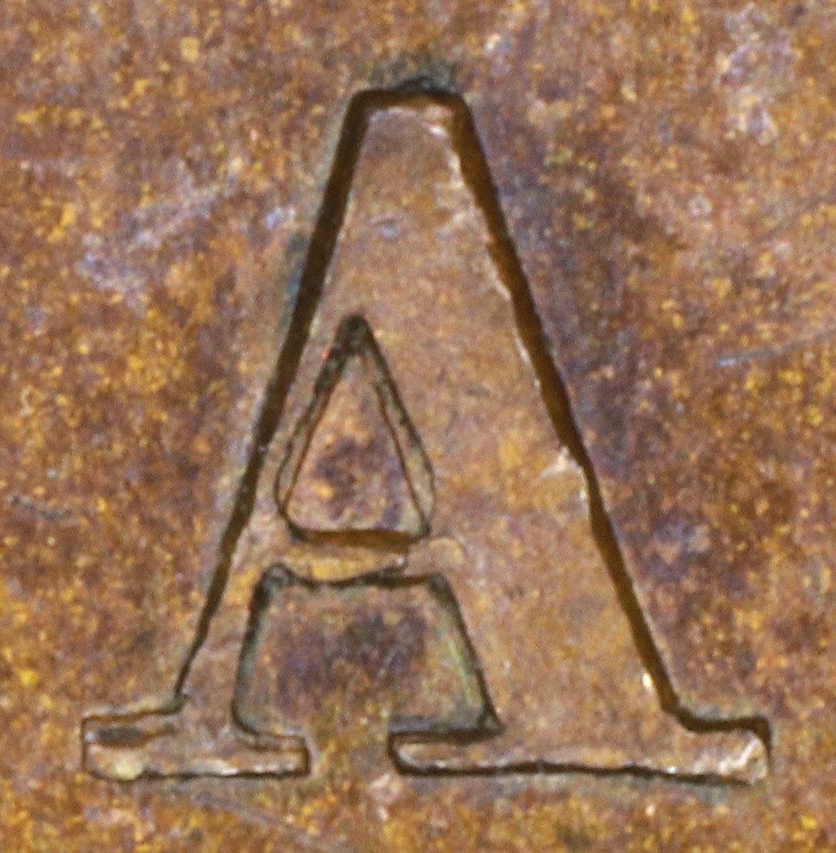 In CANADA the A has been repunched in low relief and slightly tilted compared to the original faulty letter. This causes doubling at the lower outside left of the left leg and all along the left side of the right leg.