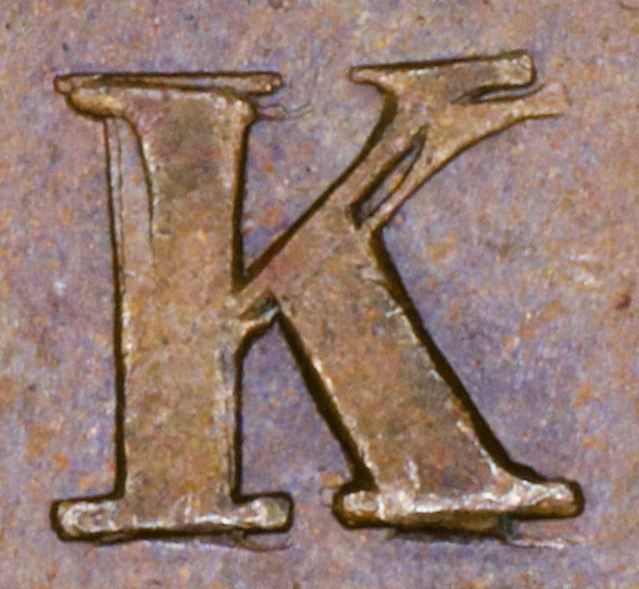 In BANK the K is repunched at a slant, causing major doubling of the upright and arm.