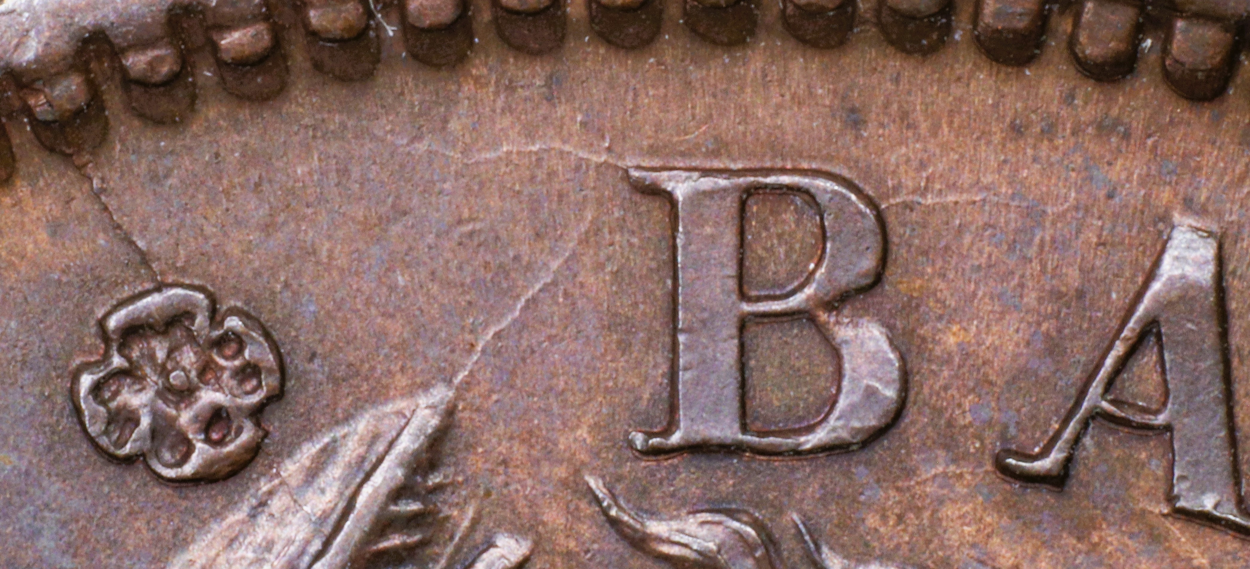 In BANK there is a major repunching of the K, which is die-defining for the die R214. This reverse has been found only on BUC-214 and BUC-224. This facilitates the rapid identification of both die pairs.