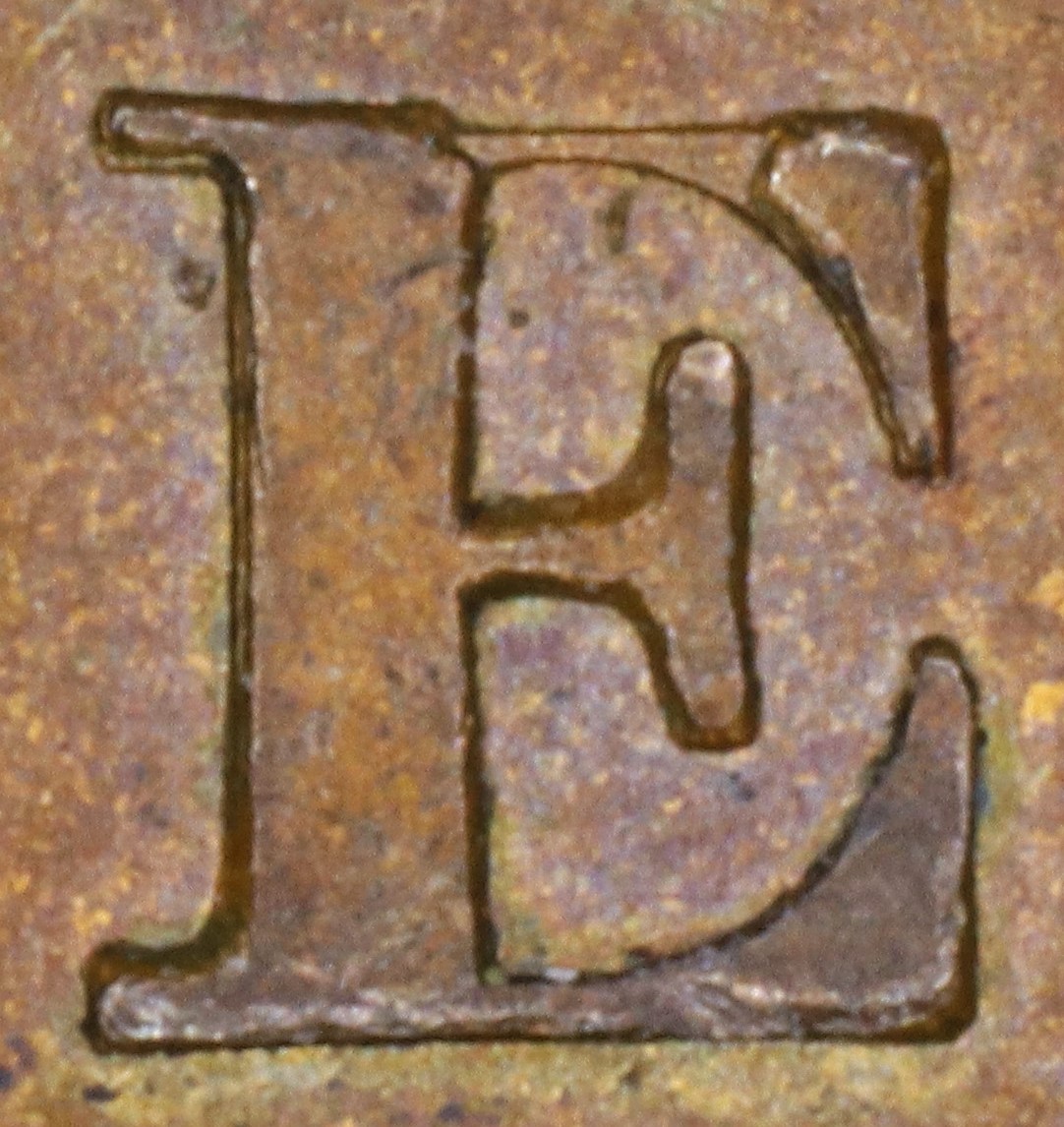 In UPPER the E is repunched in slightly lower relief than the original broken letter. Thus, the upper crossbar of the new letter shows where that part of the original letter was missing.