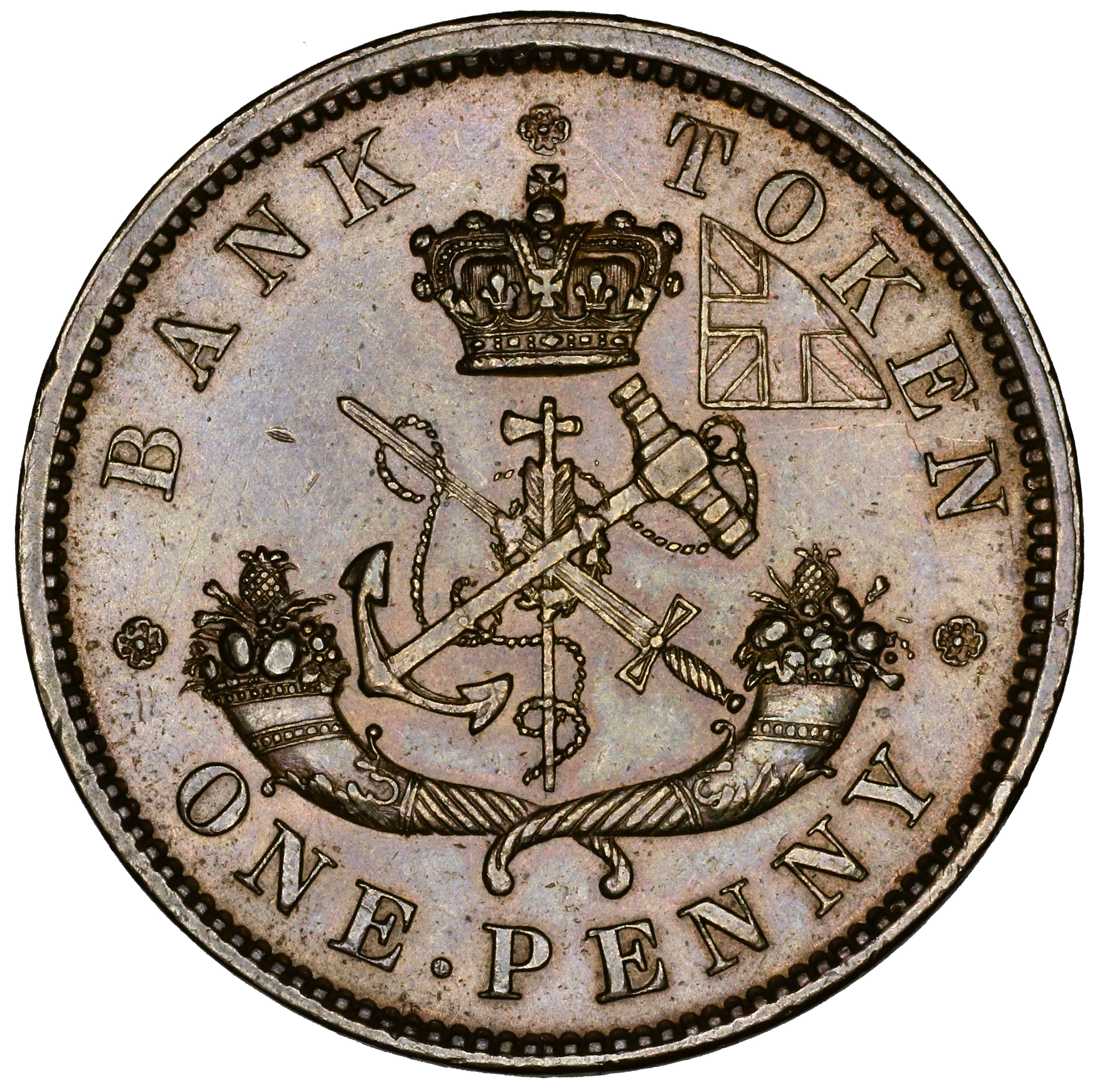 Care should be taken to differentiate BUC-228 from a new, related die pair, BUC-228A. BUC-228A couples the obverse of 228 coupled with a reverse (R228A) not seen in any other die pair. Interestingly, BANK is repunched in both reverse dies (R220 and R228A) in a similar (though not identical) manner. The best way to distinguish the two reverses is by the TOKEN. On R220 the N is repunched in lowish relief, allowing one to easily see the ragged upper left corner of the original N, whereas on R228A the N is repunched in full relief, obscuring the original corner.