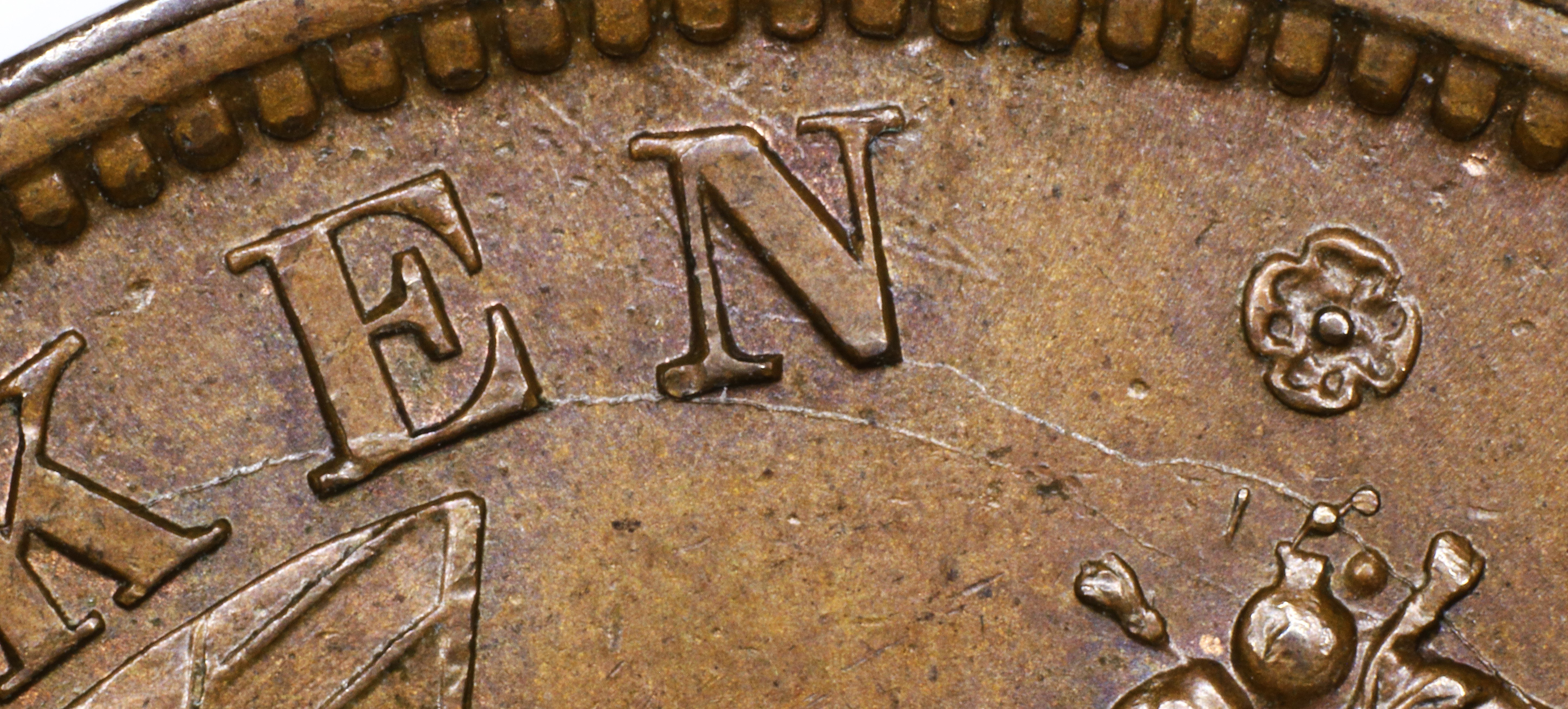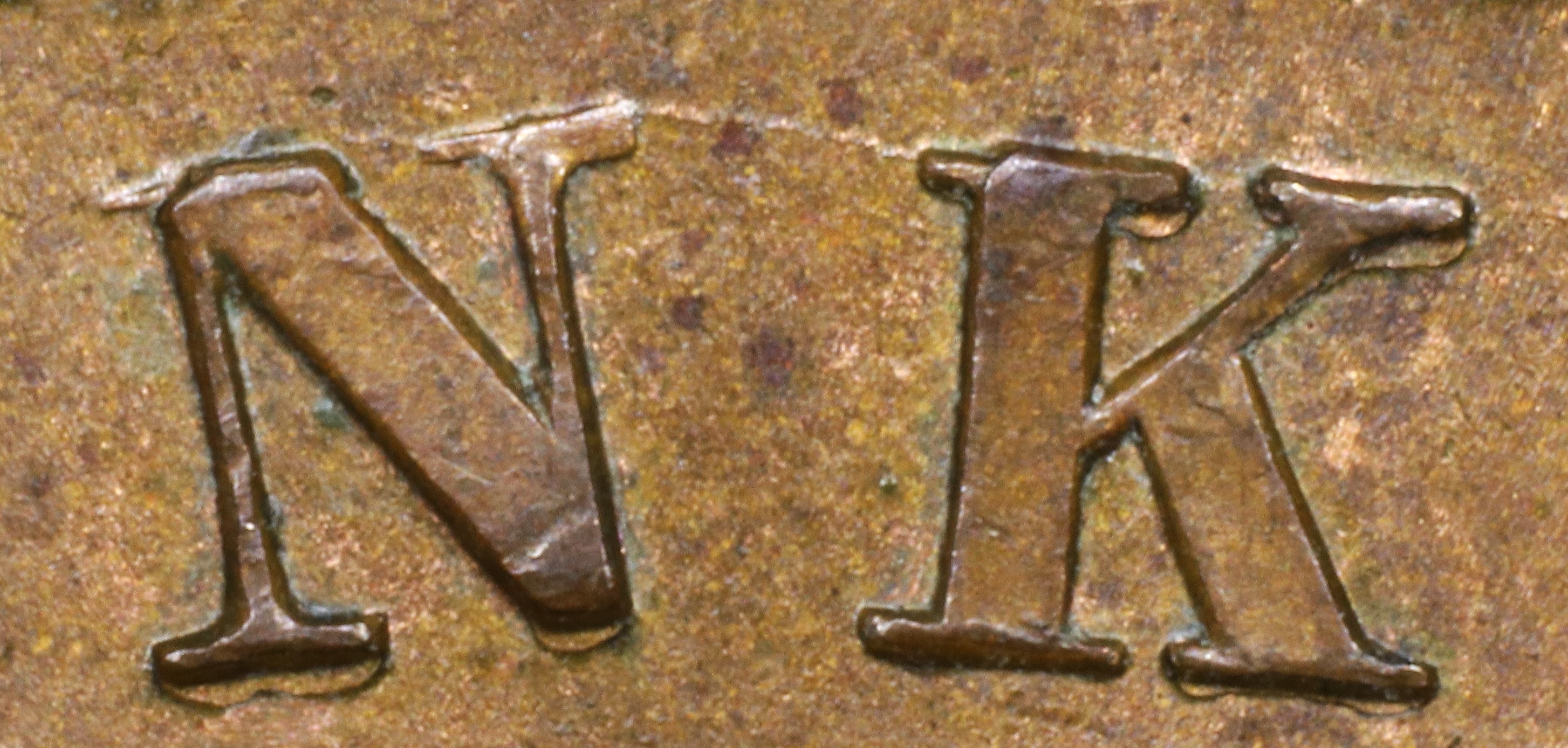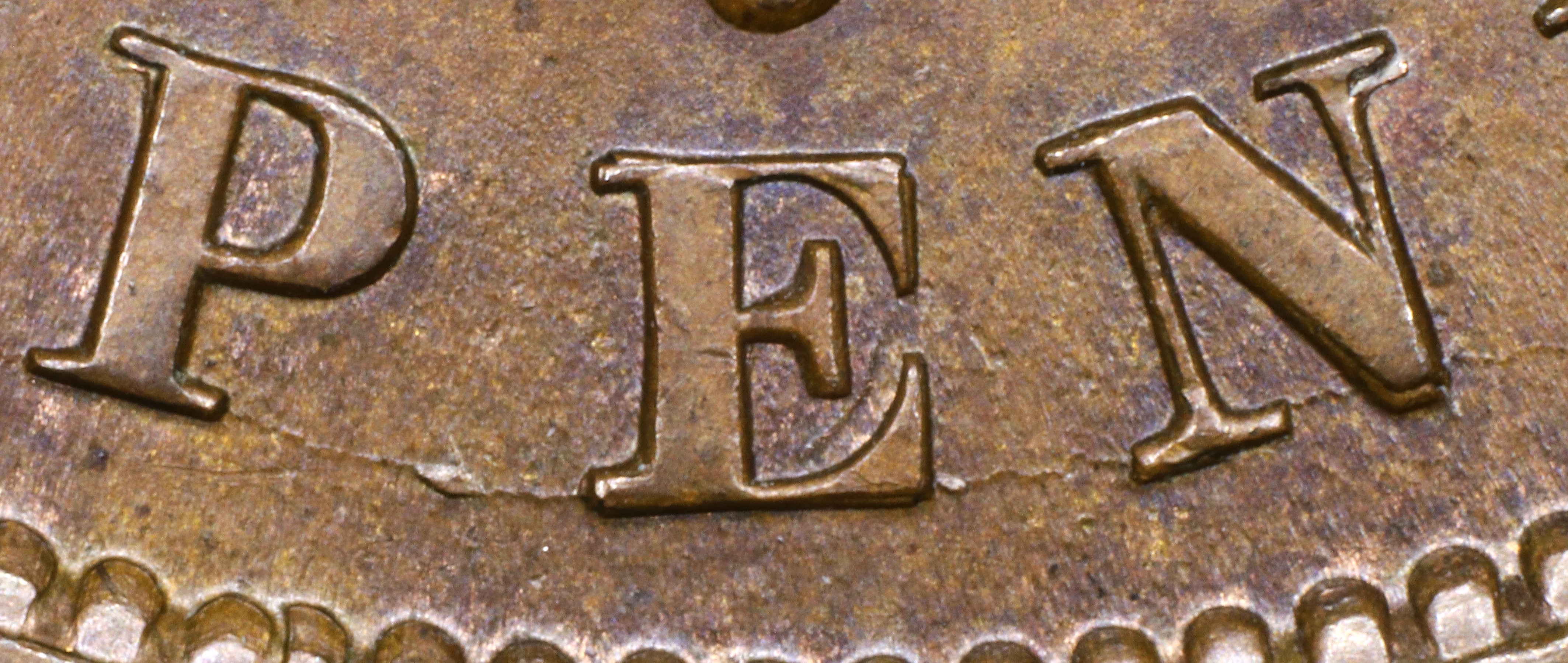 In both BANK and PENNY the Ns have been repunched slightly high, leaving the R top of the R leg doubled.