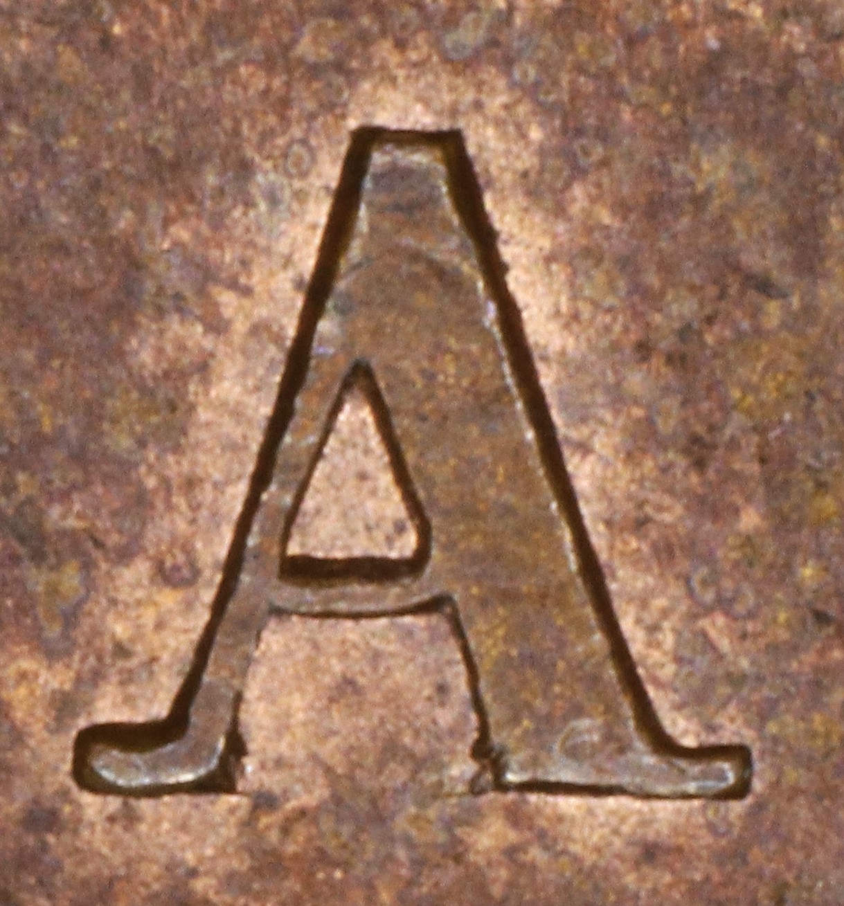 Letter color code: Black = normal, Green = broken & unrepaired, Brown = broken with noteworthy repunching