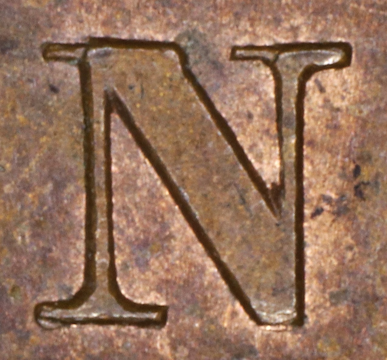 In both BANK and CANADA the Ns have been repunched in low relief in a new font with very thin serifs. The the thin serifs of the new font show in the areas where the Ns had broken: UL serif and L top of the R leg.
