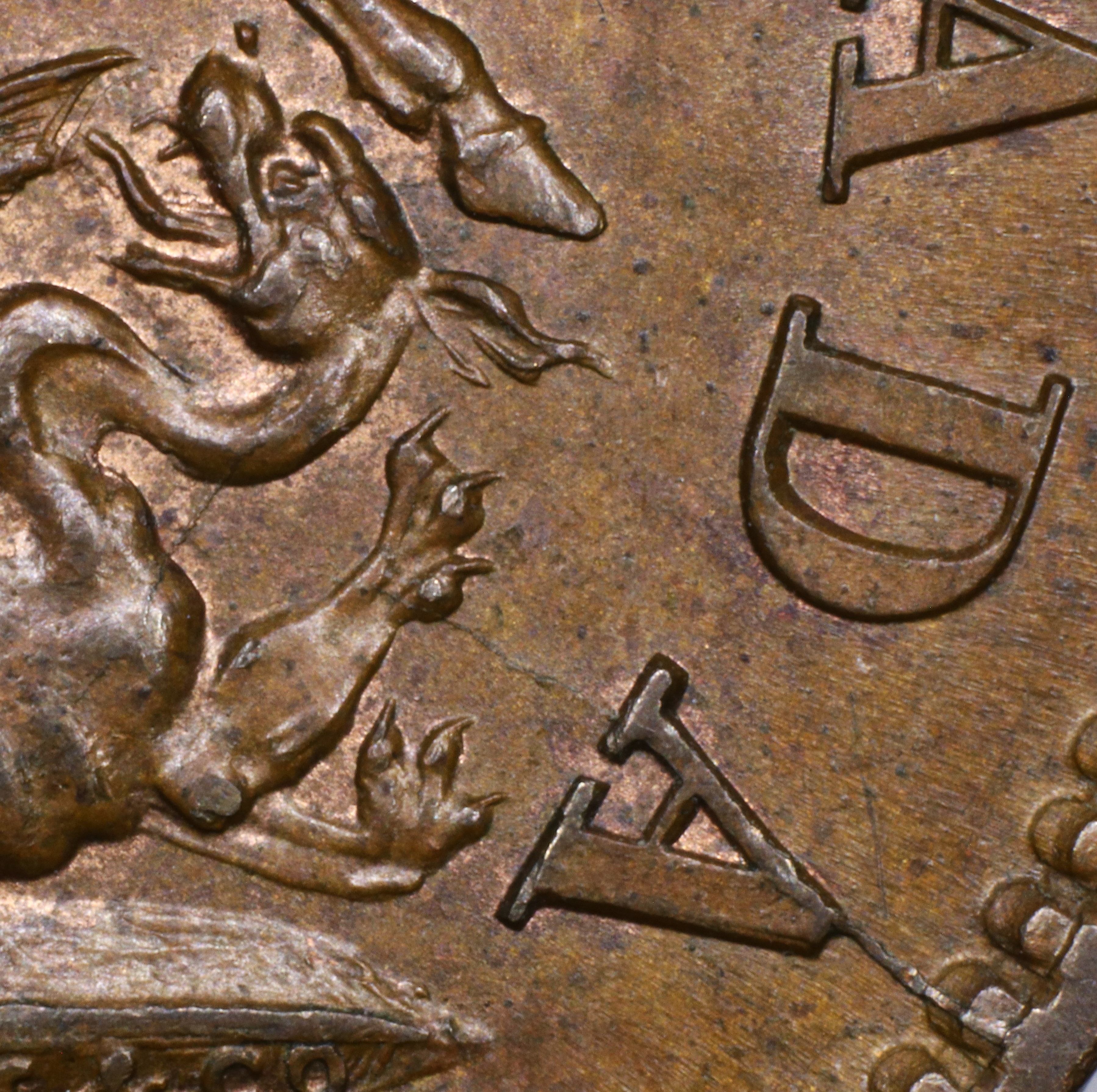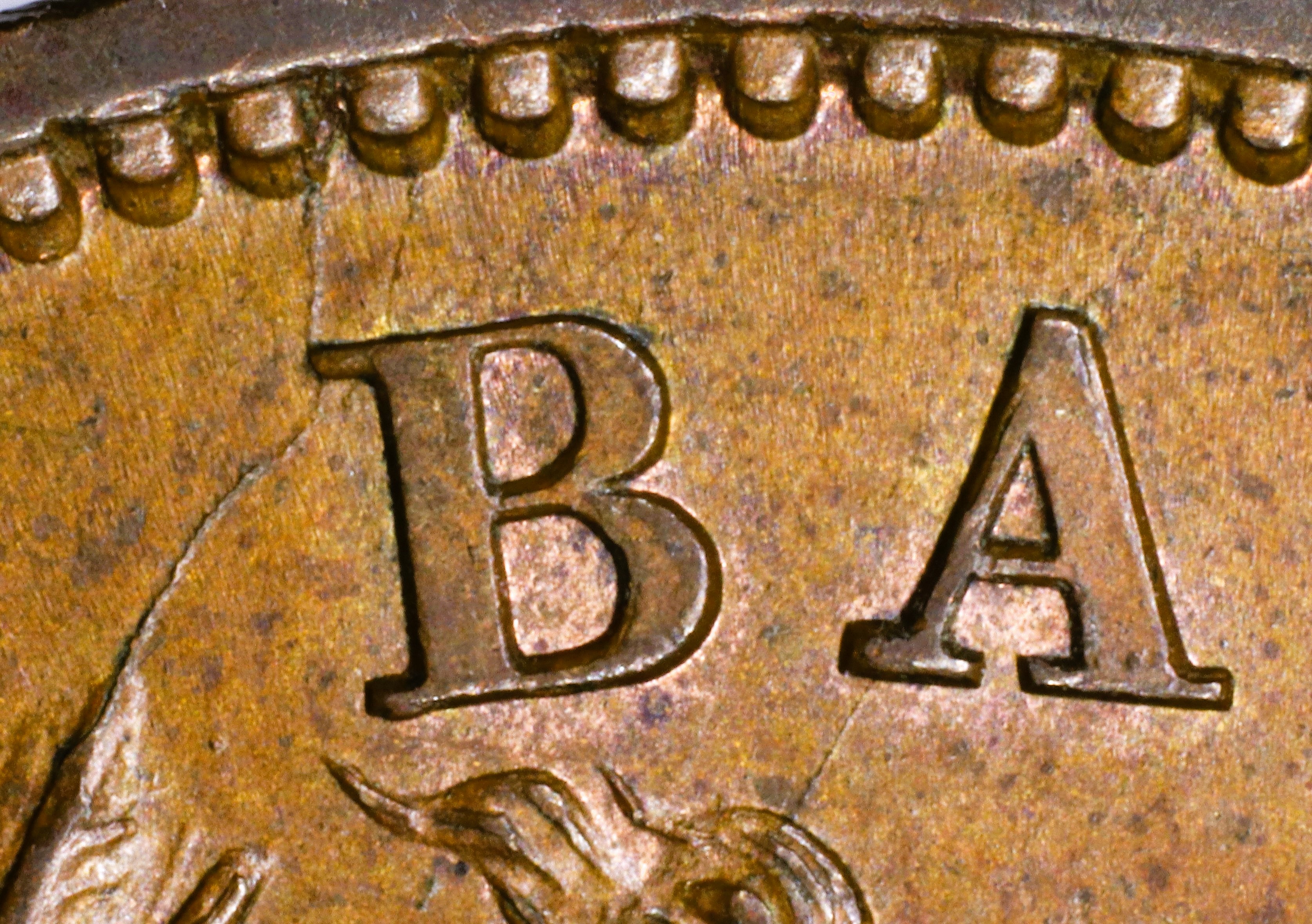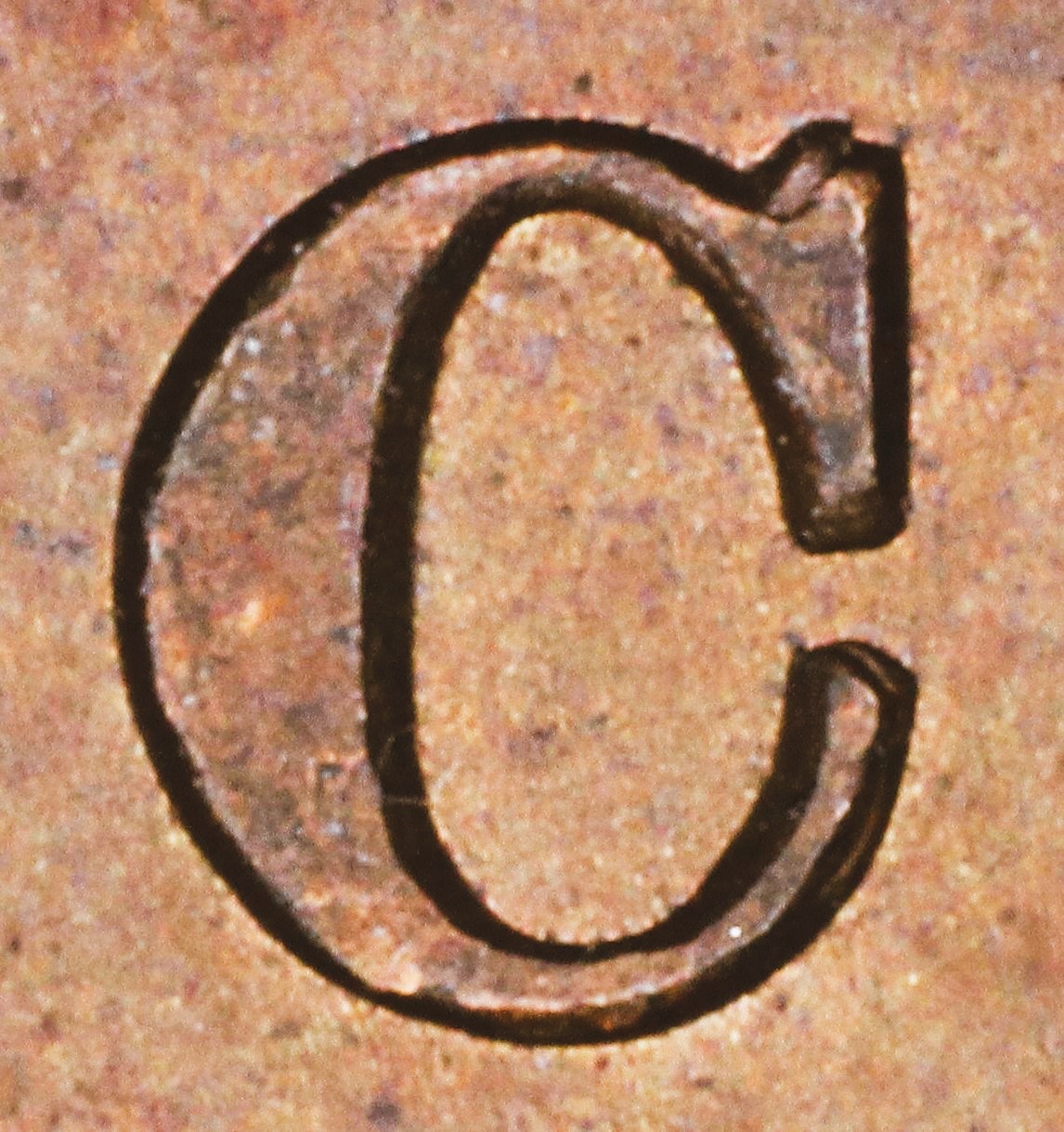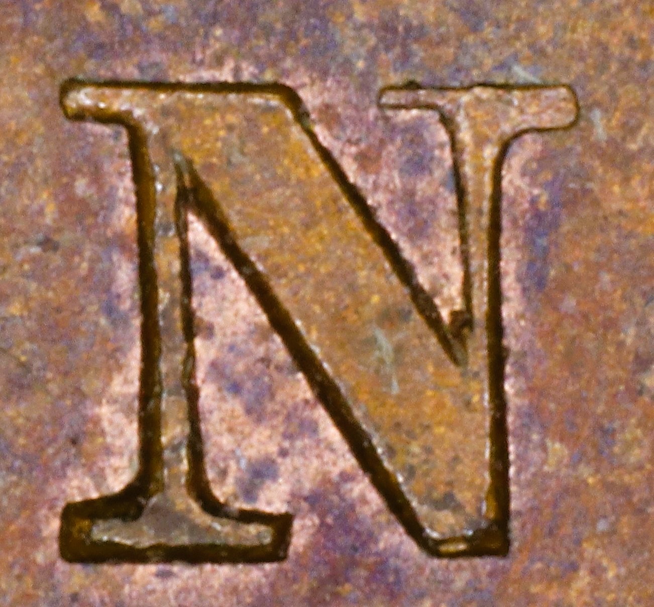 Letter color code: Black = normal, Green = broken & unrepaired, Brown = broken with noteworthy repunching