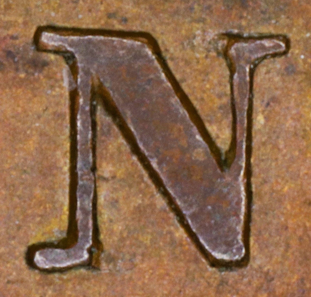 Letter color code: Black = normal, Green = broken & unrepaired, Brown = broken with noteworthy repunching