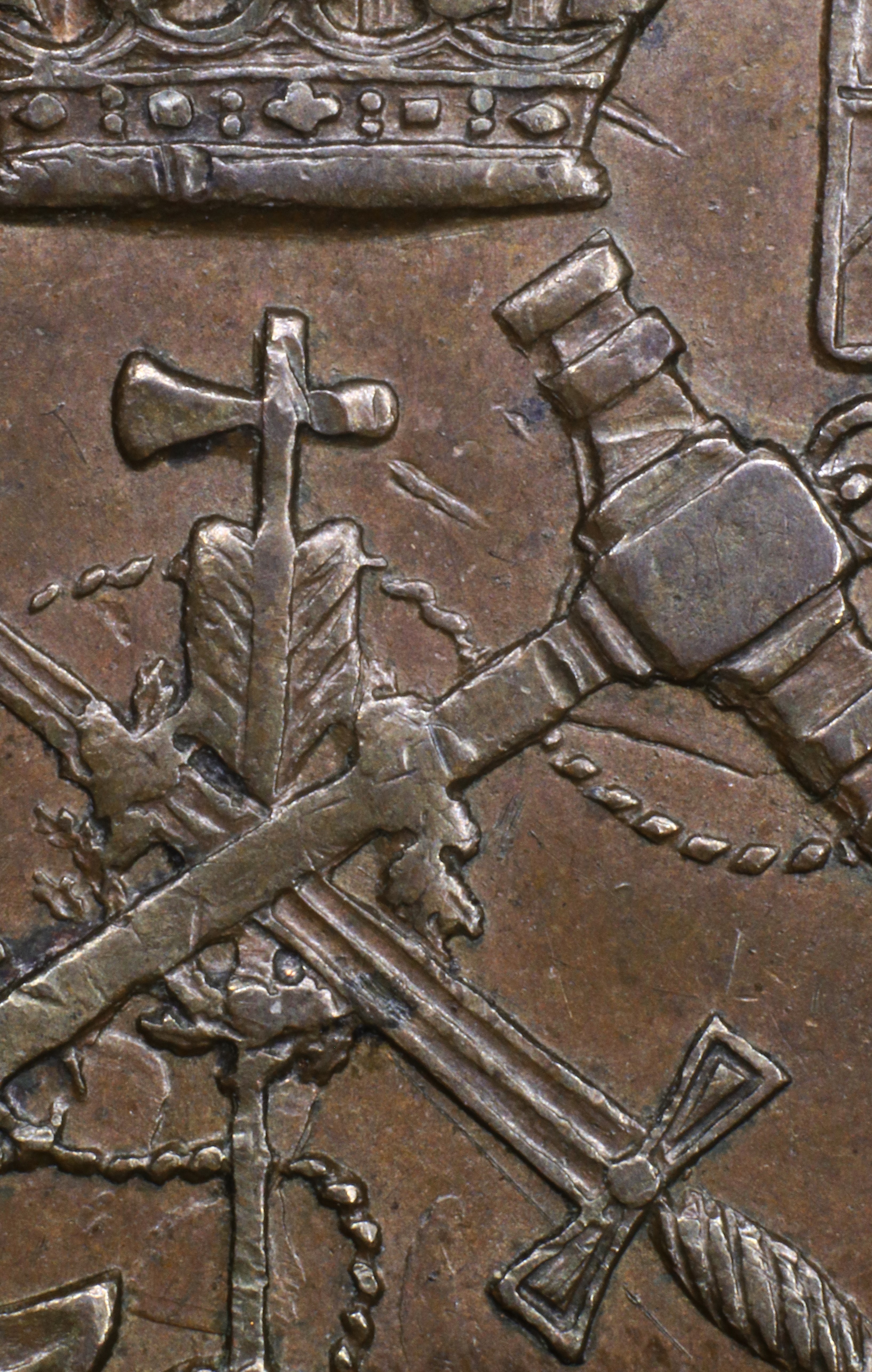 | 221.1 | No die cracks, but has clash marks around crown and anchor (see sect. D3 below). |