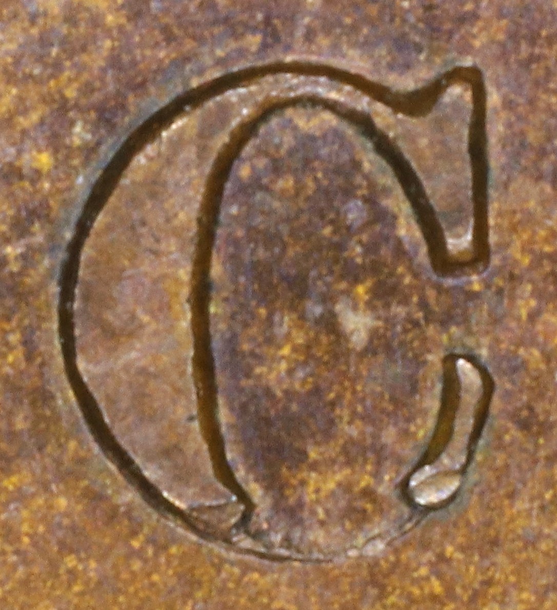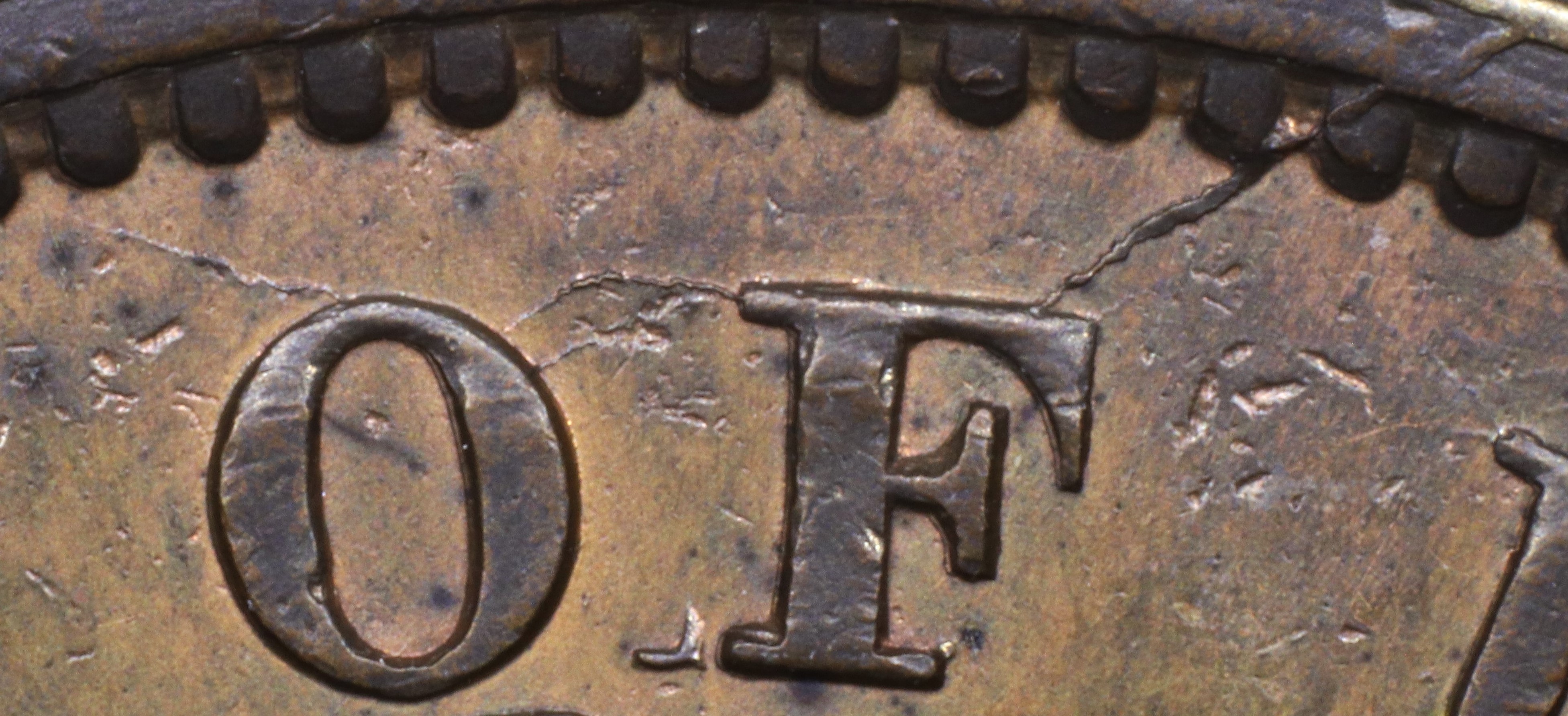 Letter color code: Black = normal, Green = broken & unrepaired, Brown = broken with noteworthy repunching