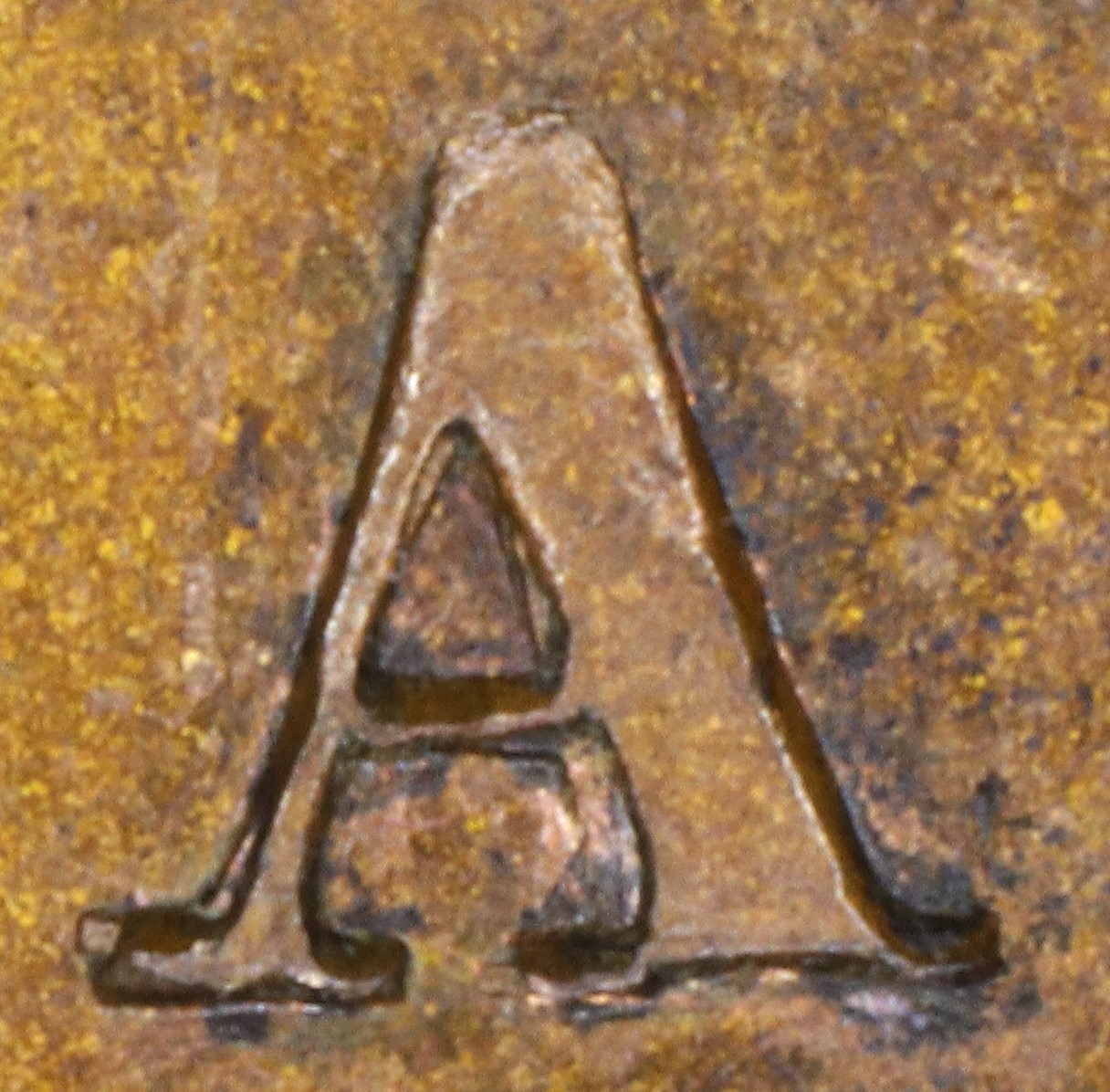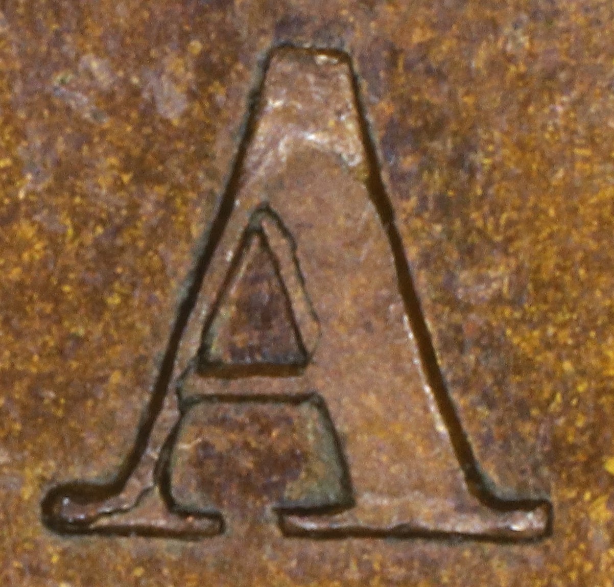 In CANADA the A has been repunched in low relief and slightly tilted compared to the original faulty letter. This causes doubling at the lower outside left of the left leg and all along the left side of the right leg.