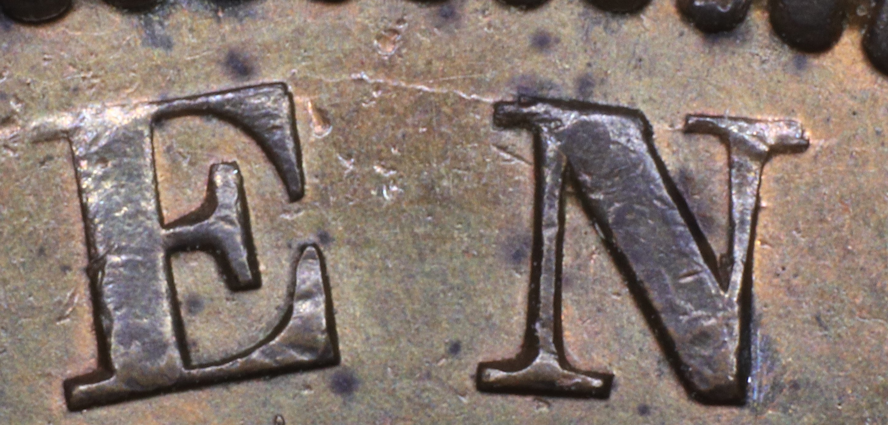In PENNY the N is repunched such that the right serif on the right leg top is doubled.