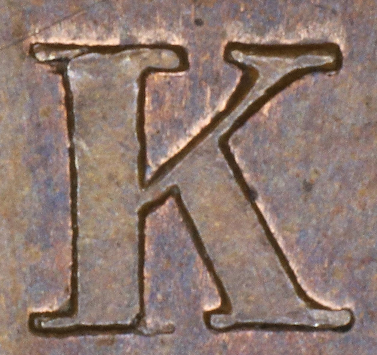 In BANK the K is repunched at a slant, causing major doubling of the upright and arm.