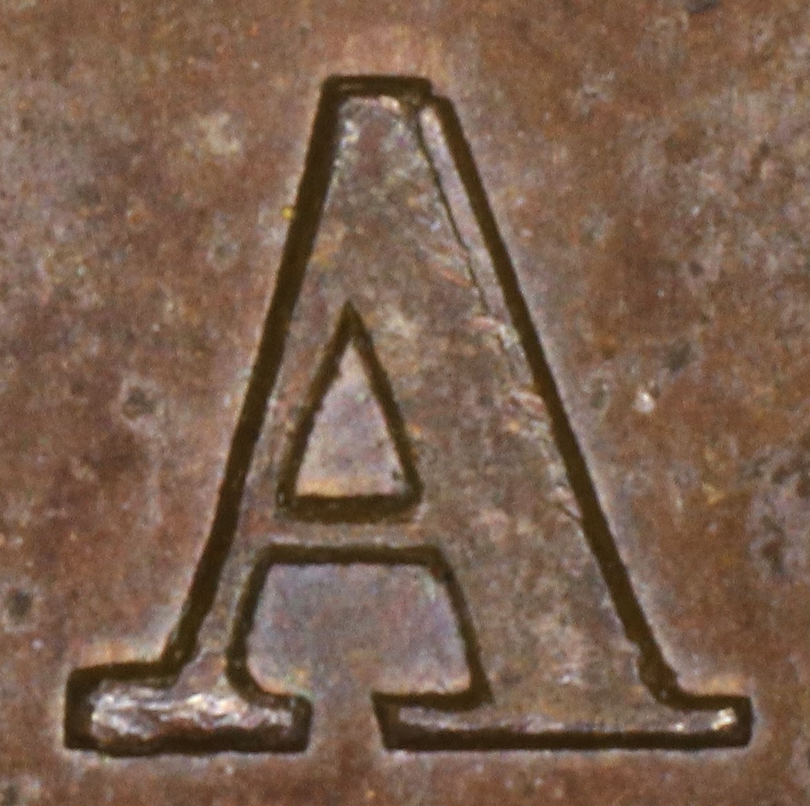 In CANADA the A is repunched to the left in slightly lower relief, causing doubling of the left side of the left leg and the right side of the inner triangle.
