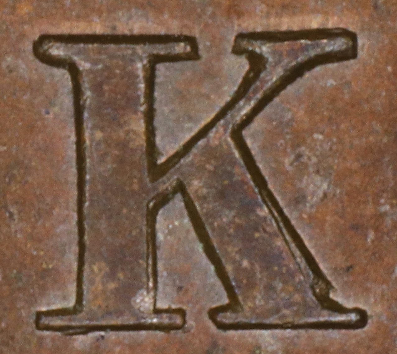 In BANK the K is repunched slightly slanted, so the front of the original right leg is doubled and shows the broken original at the bottom.