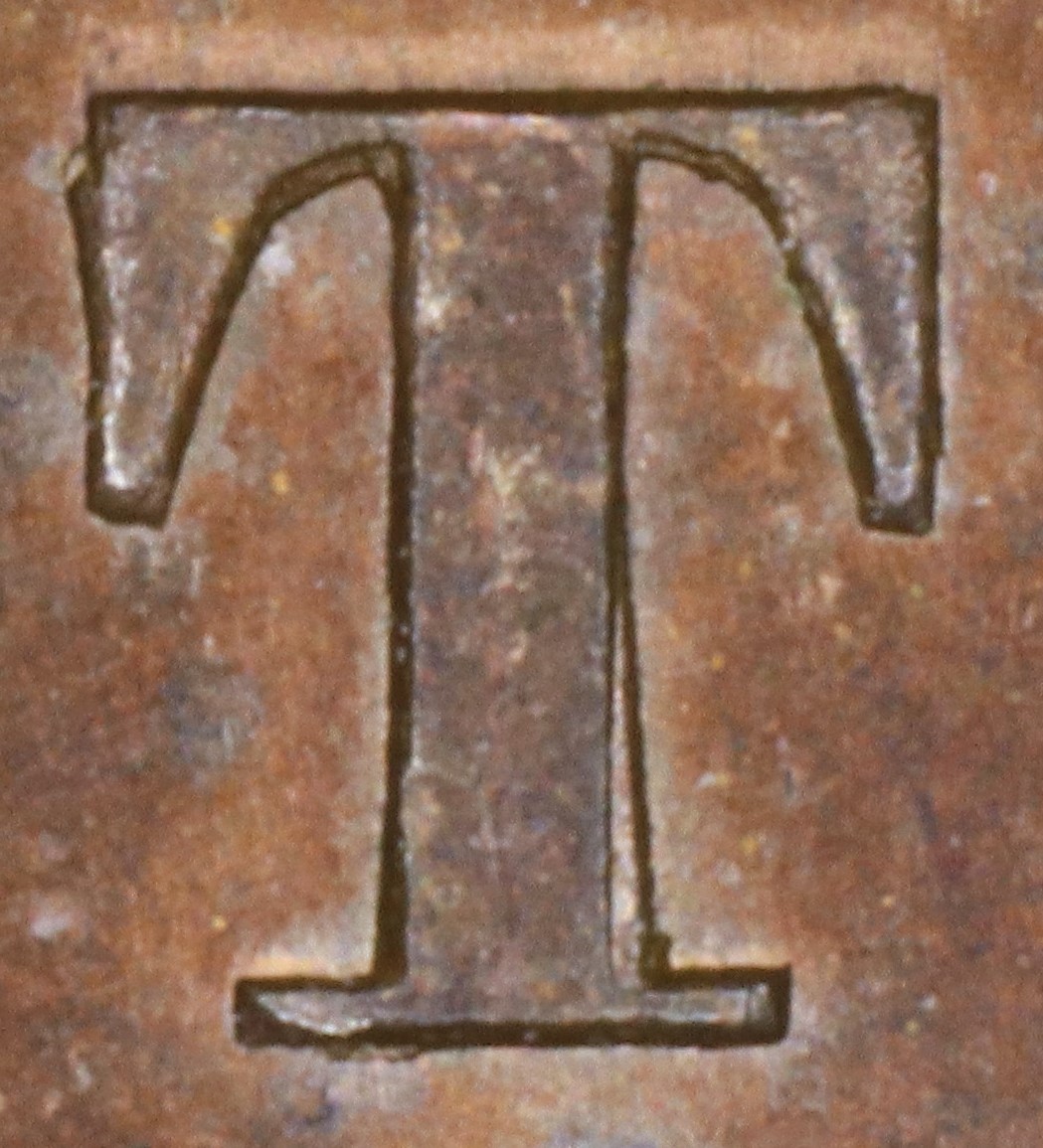In UPPER the original Ps with broken upper left corners are repunched in slightly lower relief in a new font with the upper left serif tapers (in the original font they were parallel). On better condition examples one can see the edges of the broken corners.