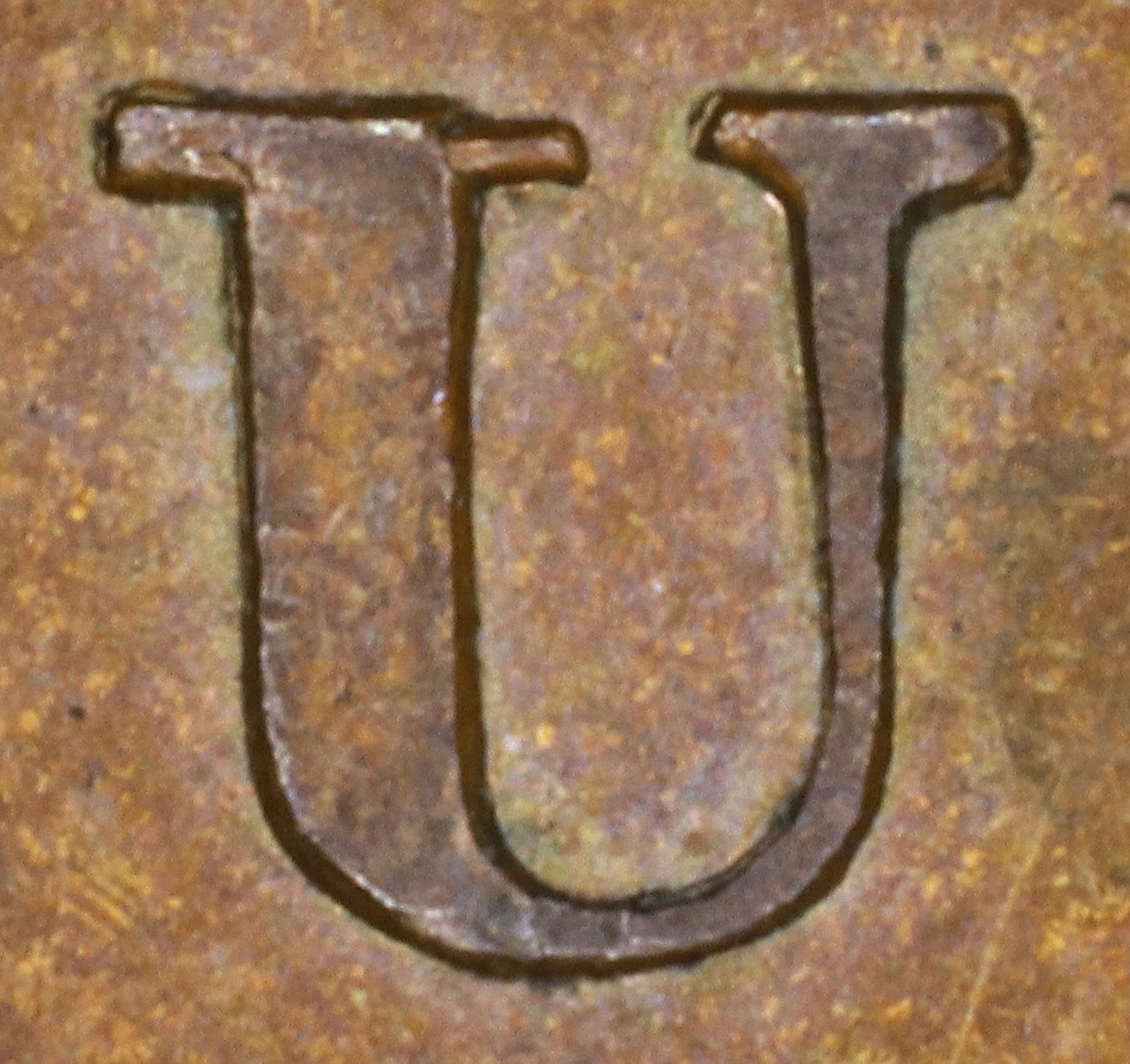 In UPPER the U is repunched low, so the new right serif on the left leg top is lower than the rest of the leg top.