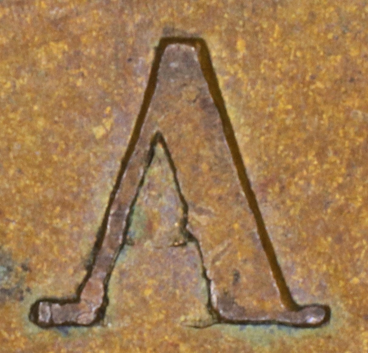 In UPPER the E is repunched in slightly lower relief than the original broken letter. Thus, the upper crossbar of the new letter shows where that part of the original letter was missing.