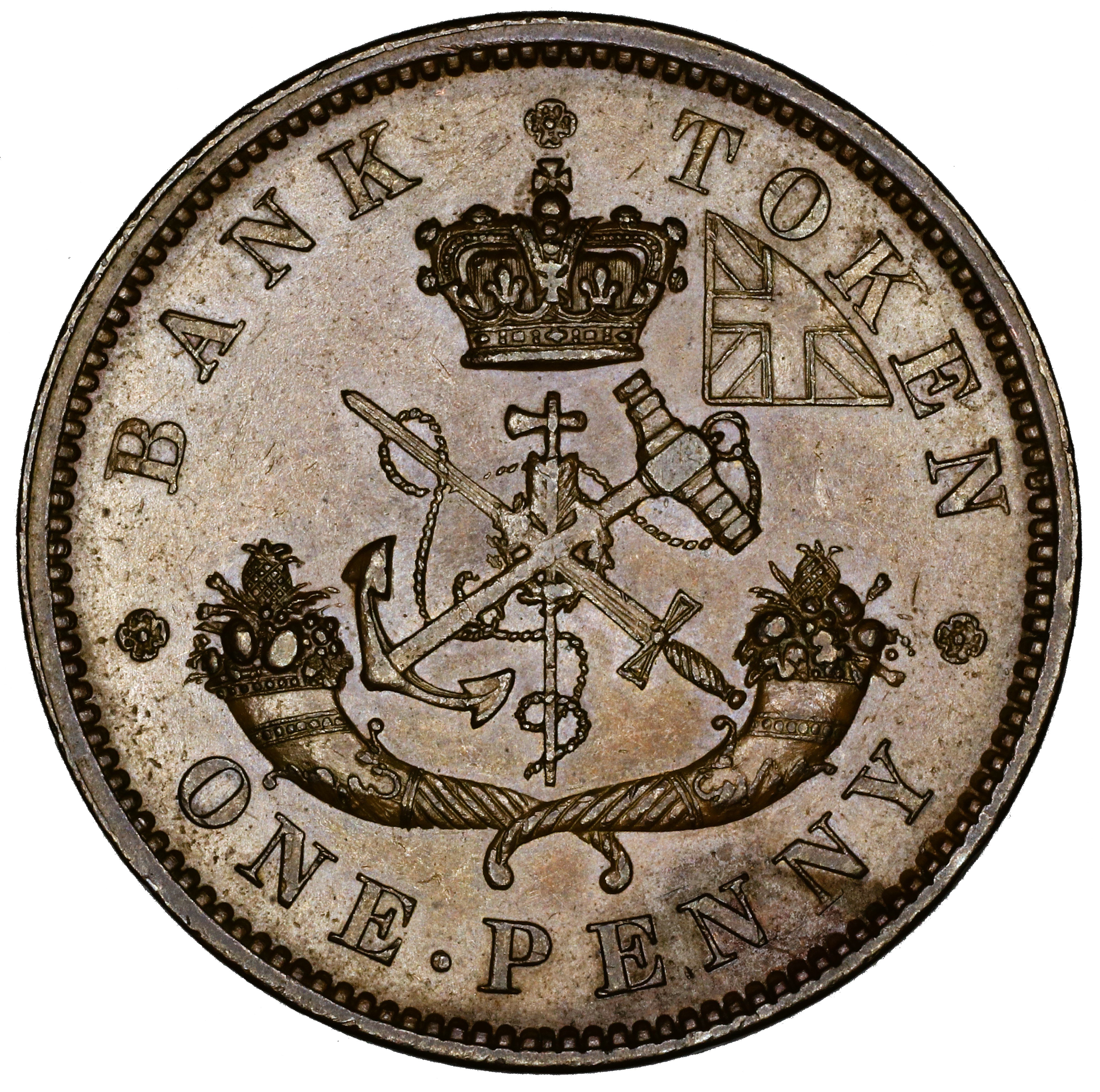 BUC-228A is a new die pair, using the obverse of 228 coupled with a reverse (R228A) not seen in any other die pair. Interestingly, BANK is repunched in both reverse dies (R220 and R228A) in a similar (though not identical) manner. The best way to distinguish the two reverses is by the TOKEN. On R220 the N is repunched in lowish relief, allowing one to easily see the ragged upper left corner of the original N, whereas on R228A the N is repunched in full relief, obscuring the original corner. The “normal” N of R228A is included in the illustrations for reference purposes.