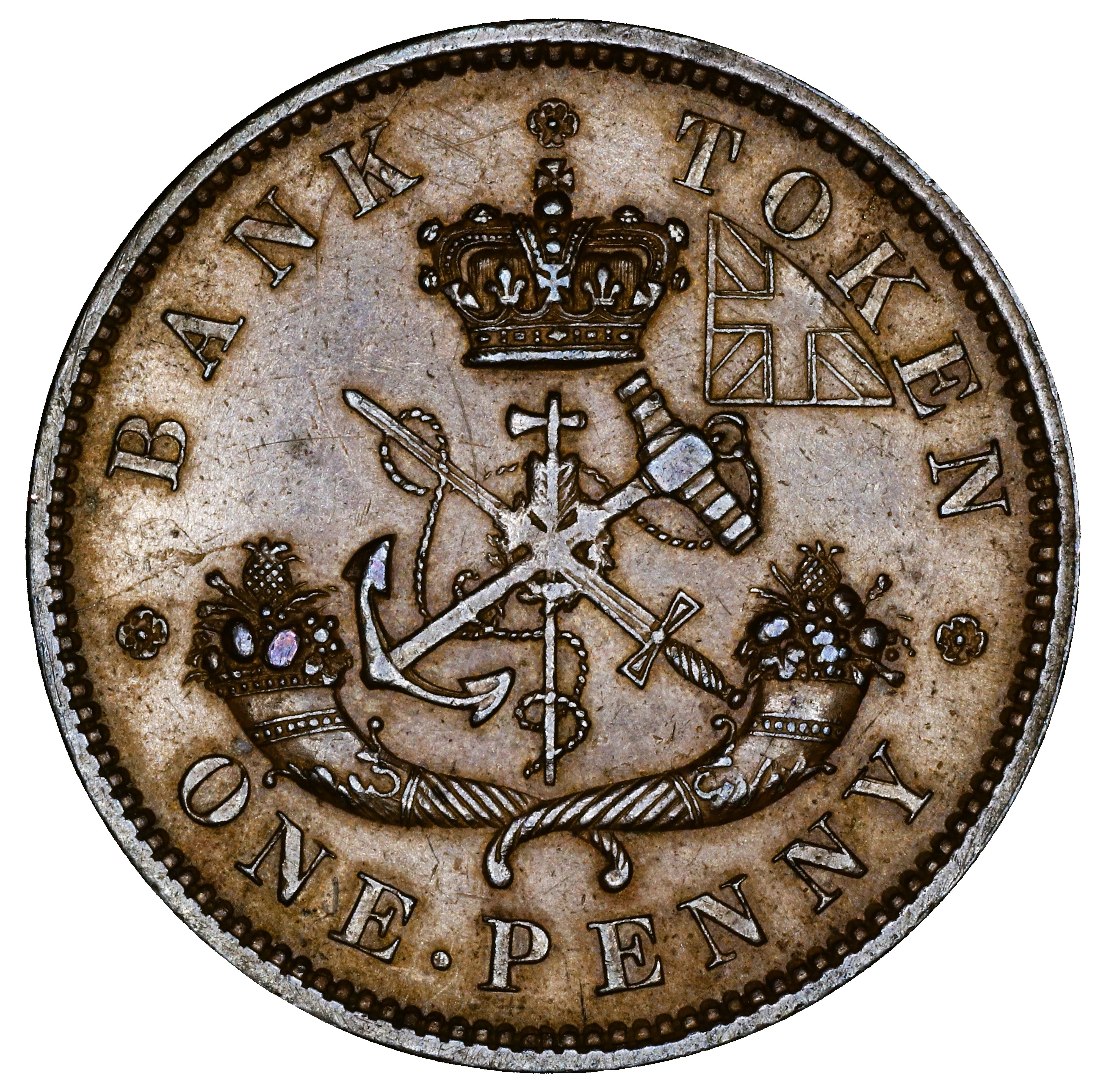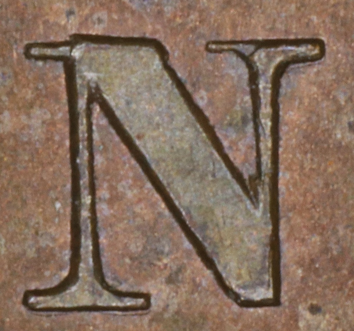 In BANK the broken original N is repunched in lower relief with a new font with thin serifs. On higher grade examples one can still see the broken edges of the original letter at the upper left corner and the top of the right leg..