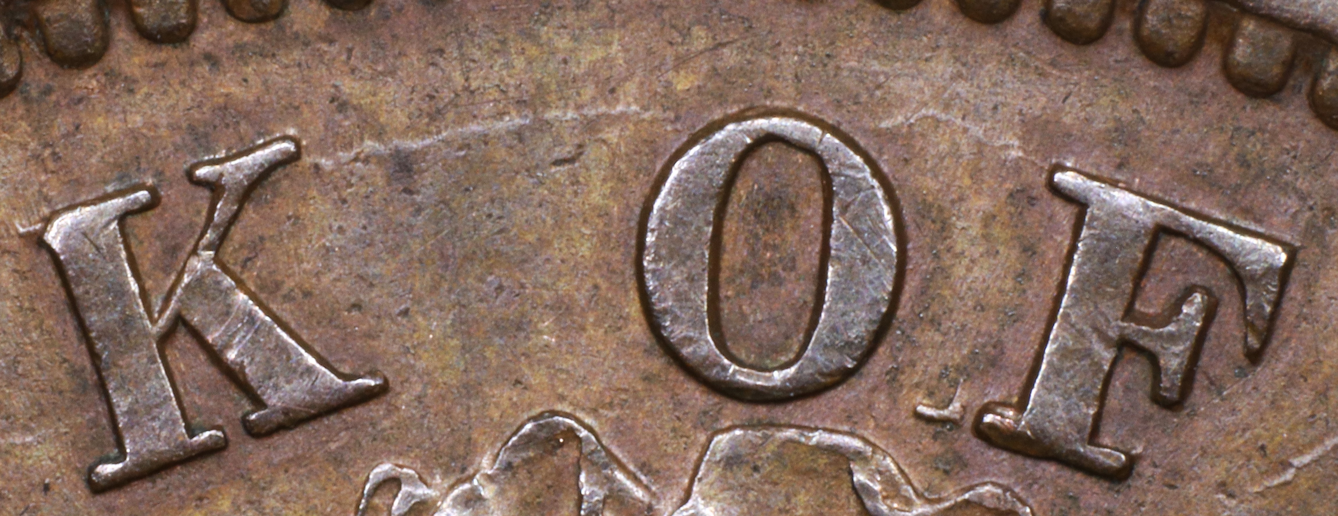 Two die pairs, BUC-222 and BUC-232 share the reverse die R232, which has a die-defining sharply double punched K in BANK. This facilitates quickly zeroing in on identifying these two die pairs.