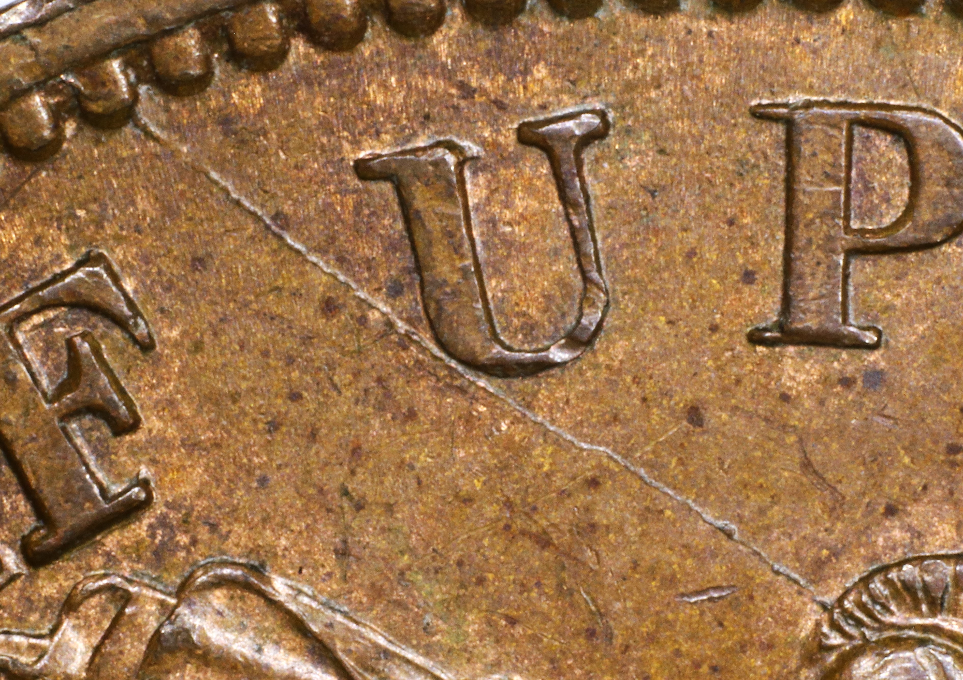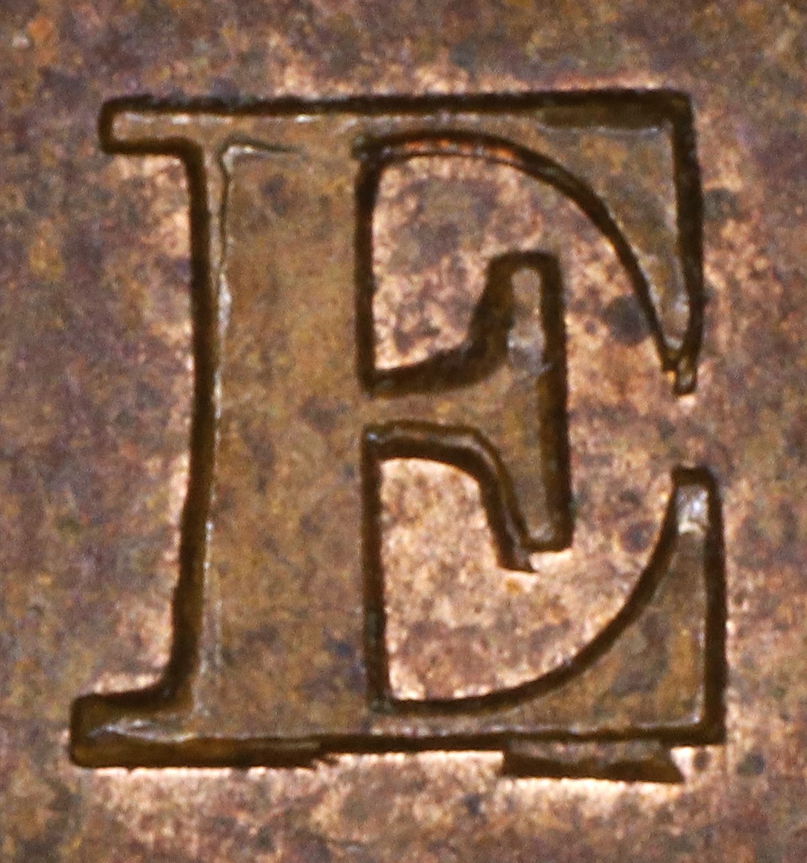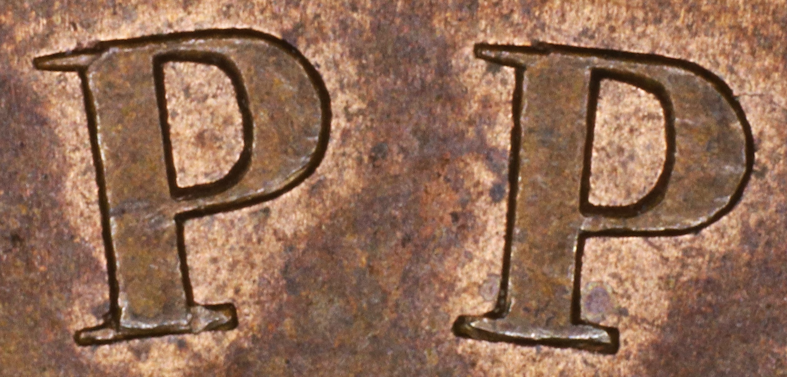 In the RP UPPER the letters are repunched in slightly lower relief in a new font with the UL serif of the Ps tapers (in the original font they were parallel).