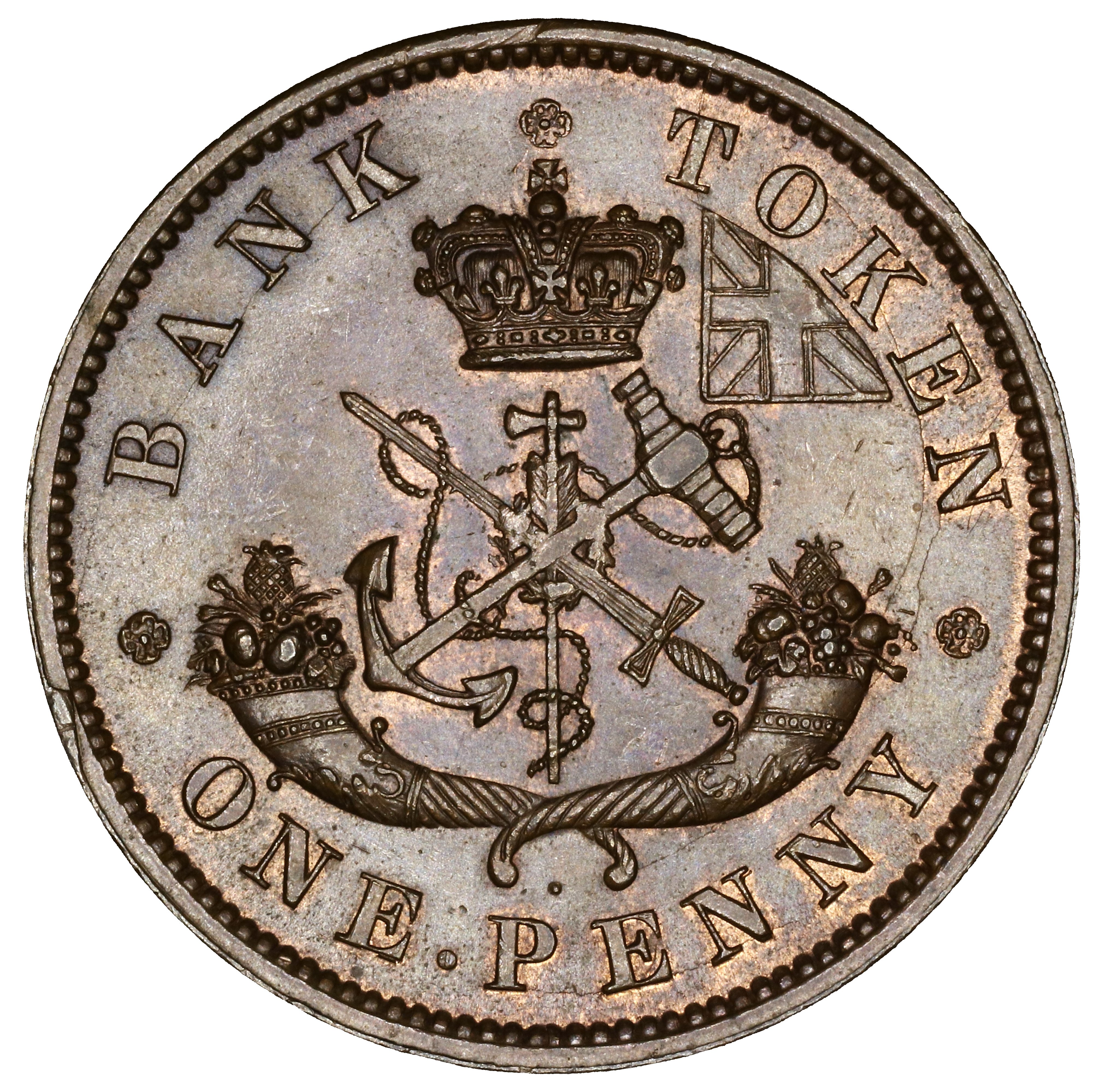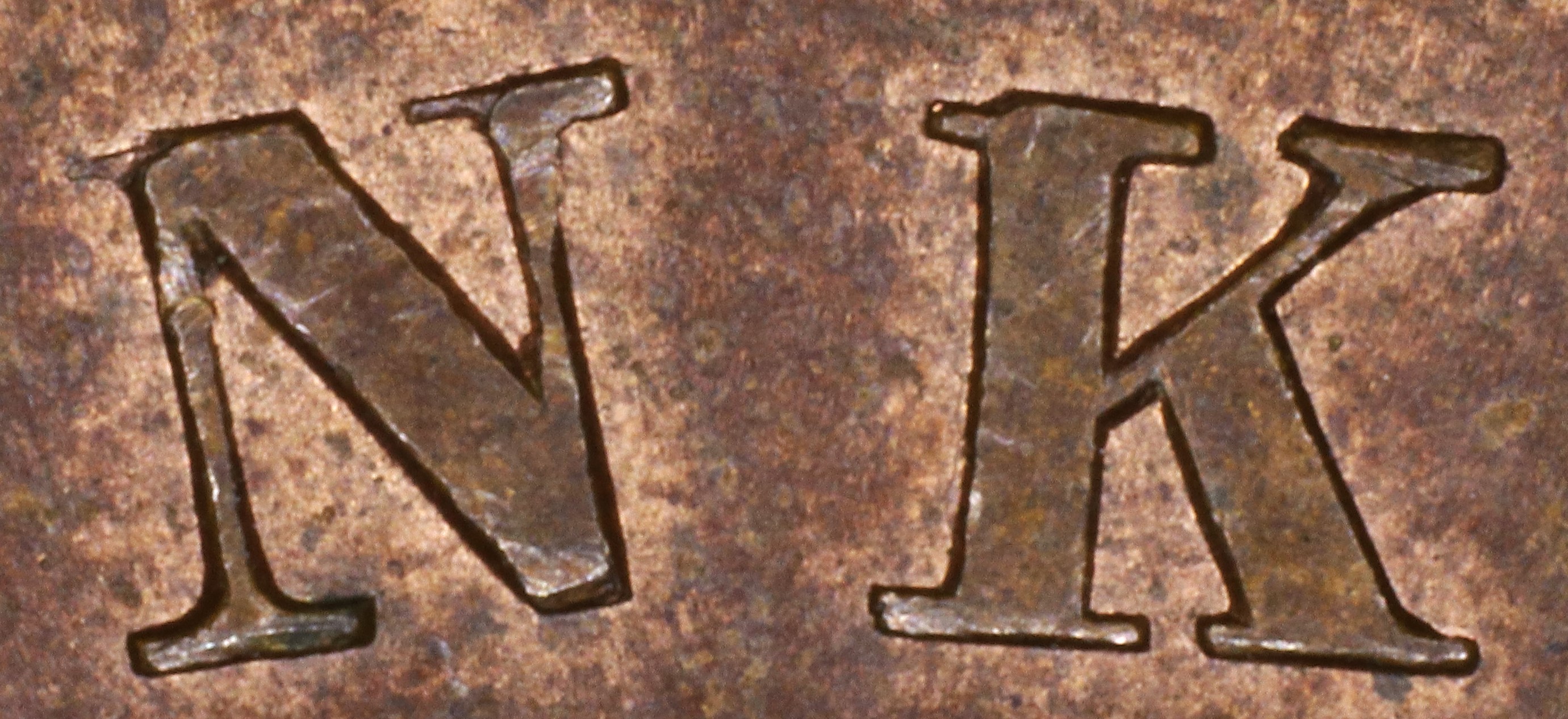 In both BANK and PENNY the Ns have been repunched slightly high, leaving the R top of the R leg doubled.