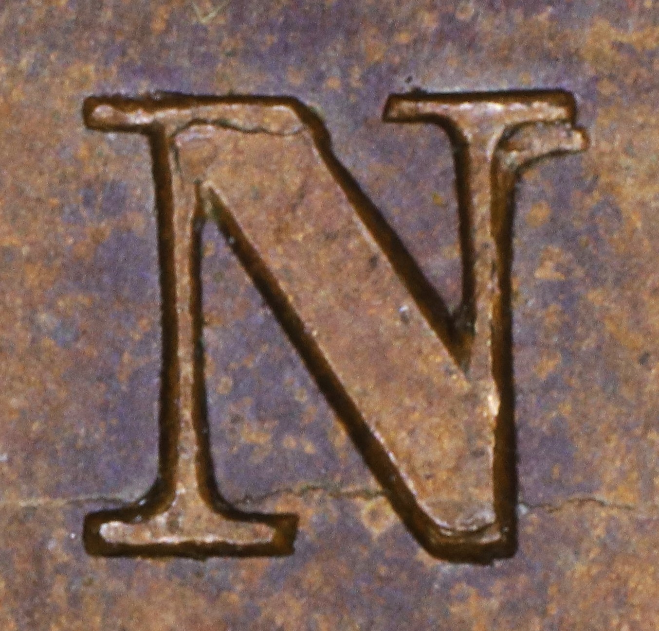 In both BANK and CANADA the Ns have been repunched in low relief in a new font with very thin serifs. The the thin serifs of the new font show in the areas where the Ns had broken: UL serif and L top of the R leg.